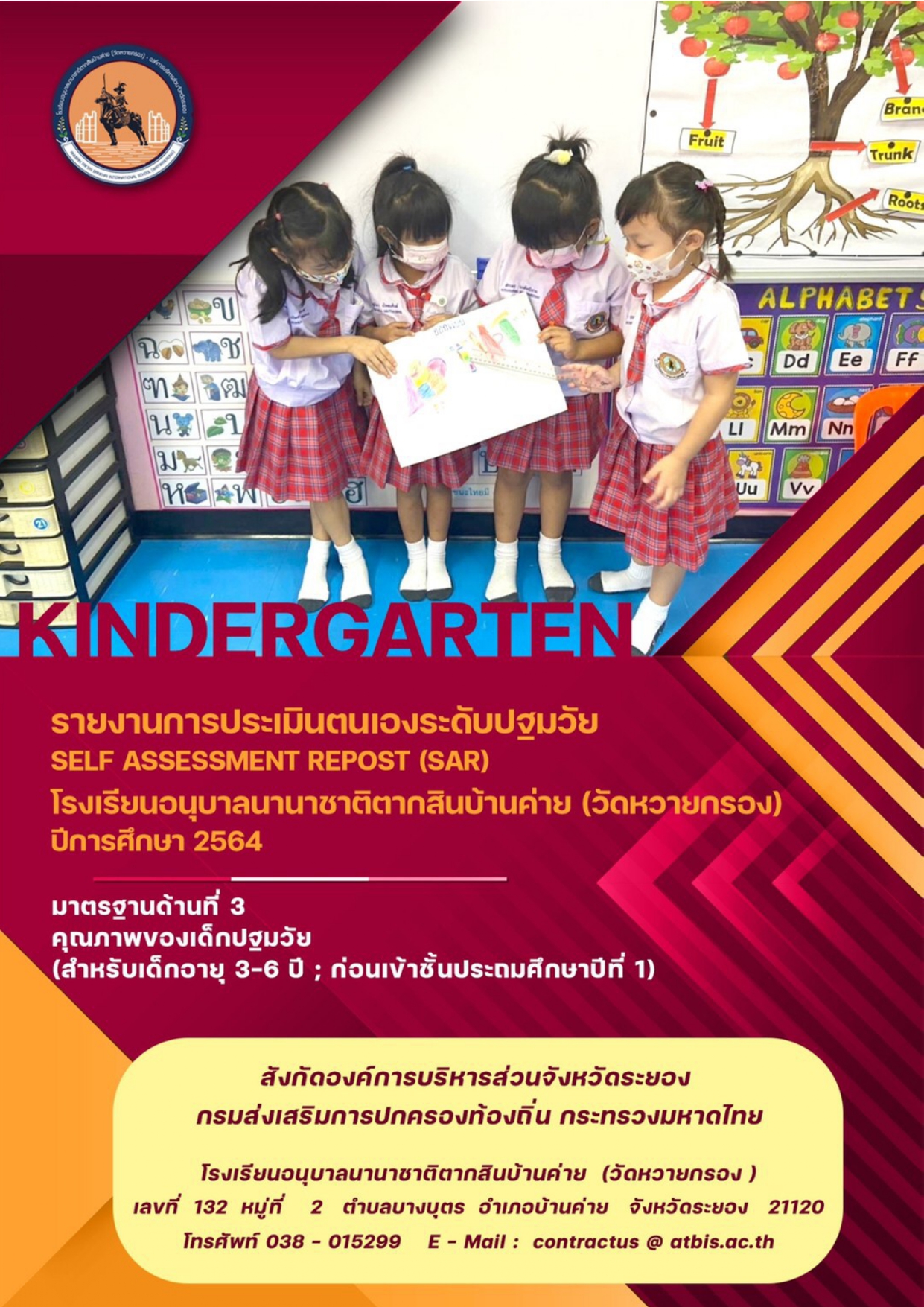 รายงานประเมินตนเอง (Self AssessmentReport : SAR) โรงเรียนอนุบาลนานาชาติตากสินบ้านค่าย (วัดหวายกรอง) ปีการศึกษา 2564 เล่มนี้ จัดทำขึ้นเพื่อนำเสนอรายงานผลการประเมินตนเองต่อ